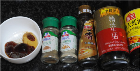 ♦Oil, edible salt, cumin powder, sesame oil, light soy sauce, oyster sauce