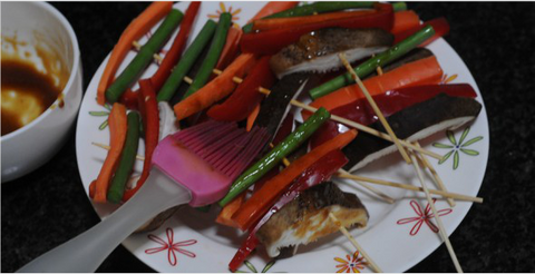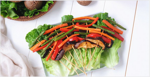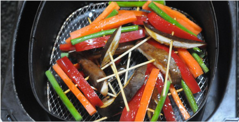 Put the processed vegetable skewers in an Joyouce air fryer and fry for 8 minutes at 230 degrees