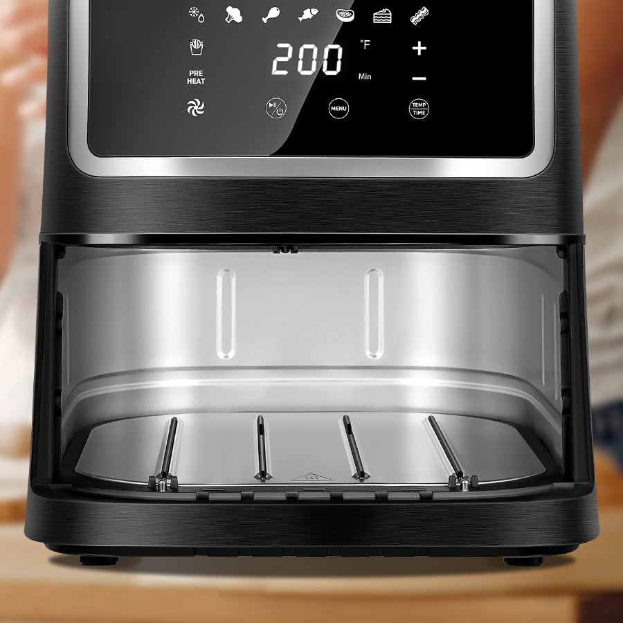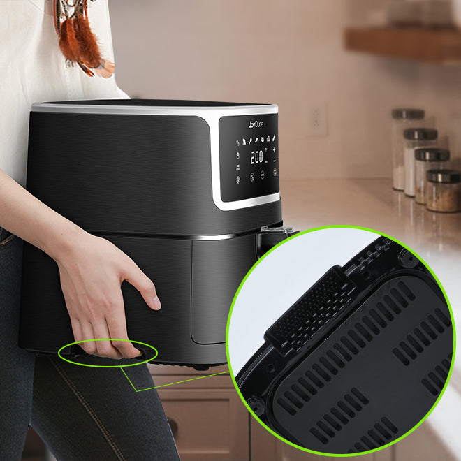 Joy 3 Air fryer is a classic  European design, with an elegant brushed matte finish. JoyOuce pursues perfection in production design, including functions, structures, electric performances, details, and material selections, which makes it a perfect crafts. 5.8 quart family size air fryer provide powerful hot air, no need oil, to fry your favorite food more quick and more easy, to let your family enjoy less fat, crisp flavour and healthy food.