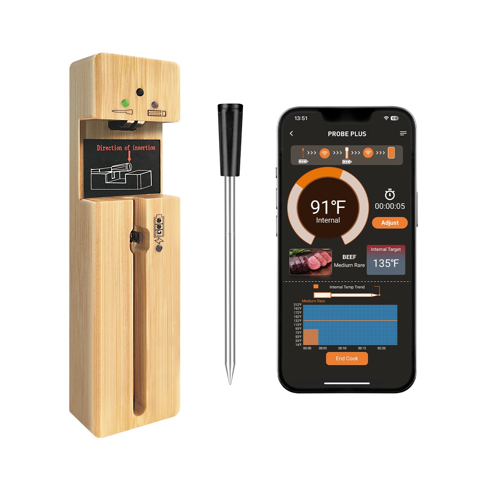- Rechargeable Bluetooth Thermometer for Smoker: With just 15 minutes of charging, the probe can be used continuously for 16 hours, while the repeater charges in 3-4 hours for 190 hours of monitoring. Say goodbye to overcooked meals due to power outages.