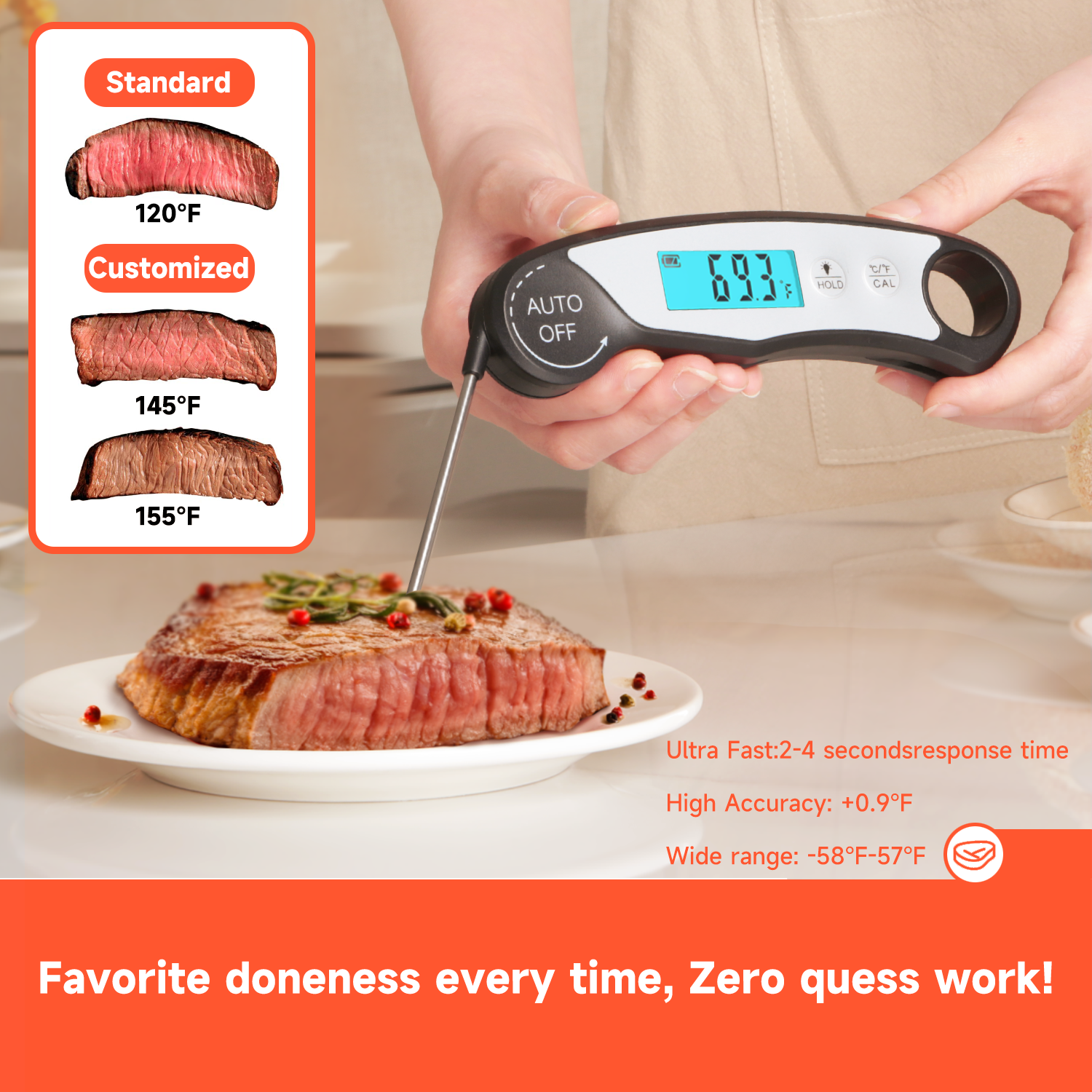 With its lightning-fast 2-3 seconds response time, you can say goodbye to the waiting game and confidently cook your favorite dishes to perfection. Not limited to meats alone, this versatile thermometer is perfect for measuring the temperature of all liquids, making it an ideal tool for cooking, baking, brewing, and more.