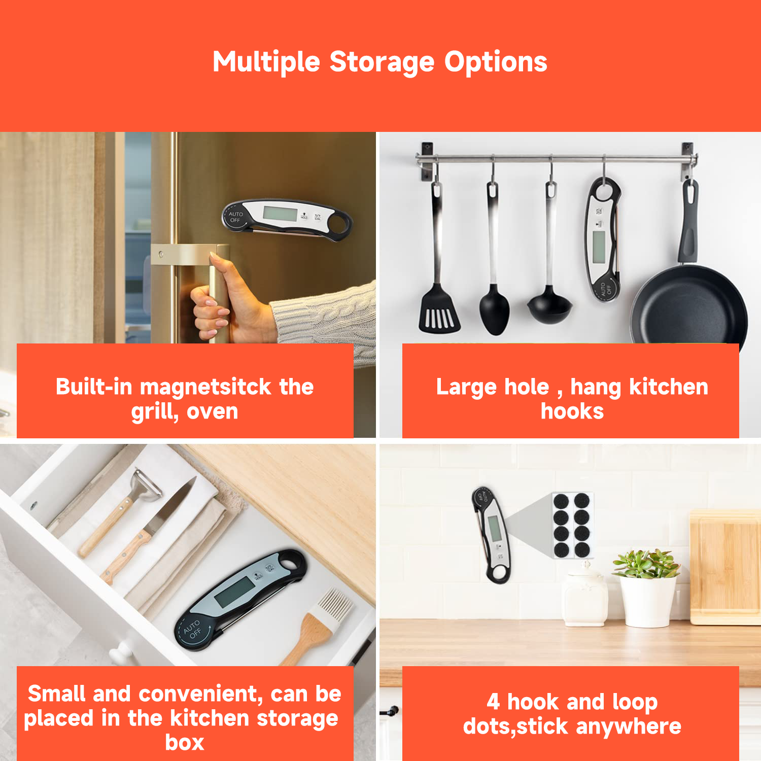 - SAFE AND RELIABLE MATERIAL:Foldable 180°food-grade probe, 304 stainless steel, non-toxic and safe to touch food. High-quality ABS shell, which is durable. IP67 waterproof, you can safely use under running water.(Note: Please wipe or rinse with a soapy cloth. Don’t soak or put in the dishwasher)