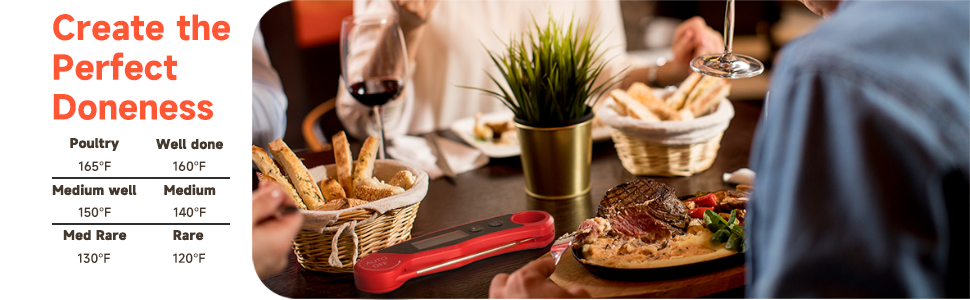 - MULTIPURPOSE:Can measure temperature for beef, steak, lamb and other cooking, also can be used for all liquid items such as milk, soup, hot oil, self -brewing etc.