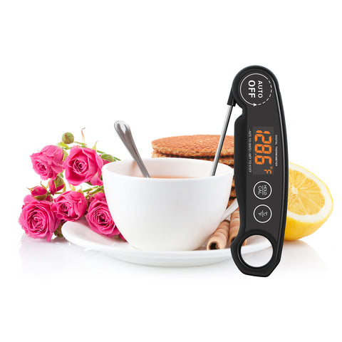 The JoyOuce kitchen thermometer is perfect for meat, candy making, beverages, frying oil, baking bread, BBQ, grill, beer, soup, crockpot, turkey, and more.